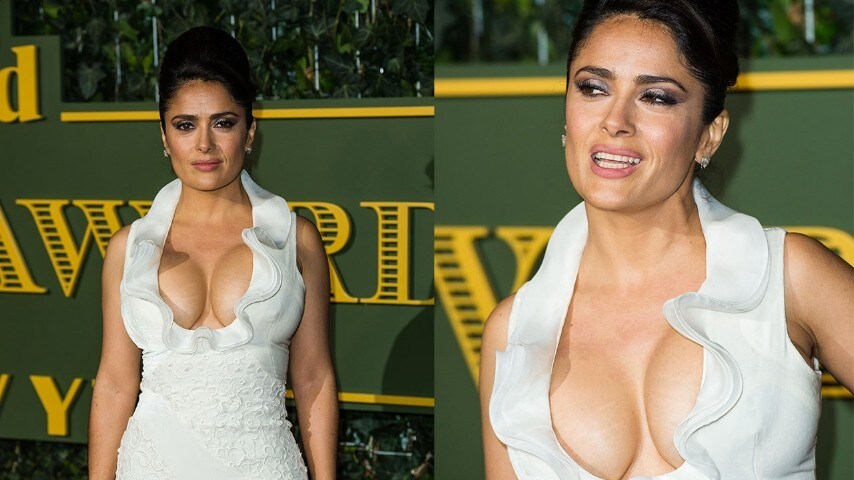 Ospite d'onore degli American Music Awards, Salma Hayek ha sconvolto la stampa presente con un outfit a dir poco esplosivo. Tutta vestita di bianco, la bella attrice ha preferito non indossare il reggiseno e mostrarsi in tutta la usa procace sensualità.
