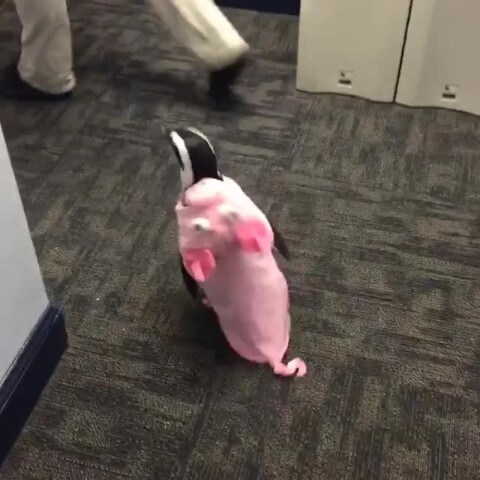 Si chiama Koko ed è un pinguino dell'acquario di Ripley in Australia e passeggia nei corridoi con un piccolo costume su misura.