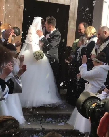Le nozze di Sharon Bergonzi e Valerio Tenneriello, che si sono sposati il 28 dicembre 2016. All'uscita dalla chiesa, la coppia di neosposi è accolta da un coro che intona "Oh, Happy Day". Fonte: Instagram - elianamichelazzo