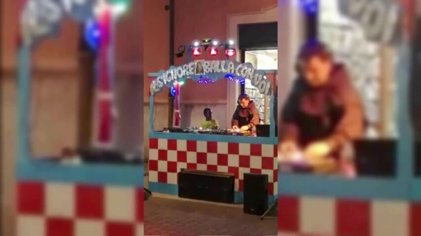 La sua postazione è riconoscibilissima: una scritta sopra alla bancarella dice "Il Signore balla con voi". Il monaco, con tanto di tonaca addosso, intrattiene gli ospiti della festa mettendo la musica e esprimendo le sue doti da Dj. La scena, ripresa a Carpi in provincia di Modena, è davvero insolita. Fonte: https://www.facebook.com/Idgie11