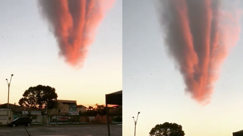 Un breve video che arriva dal Brasile, precisamente da Teixeira de Freitas, e mostra una nuvola molto particolare. Una forma allungata ,di colore rosso (dato probabilmente dal riflesso del sole al tramonto. Fonte: https://www.instagram.com/p/BX6P0jgA6Sv/?taken-by=joaopaulodemolay