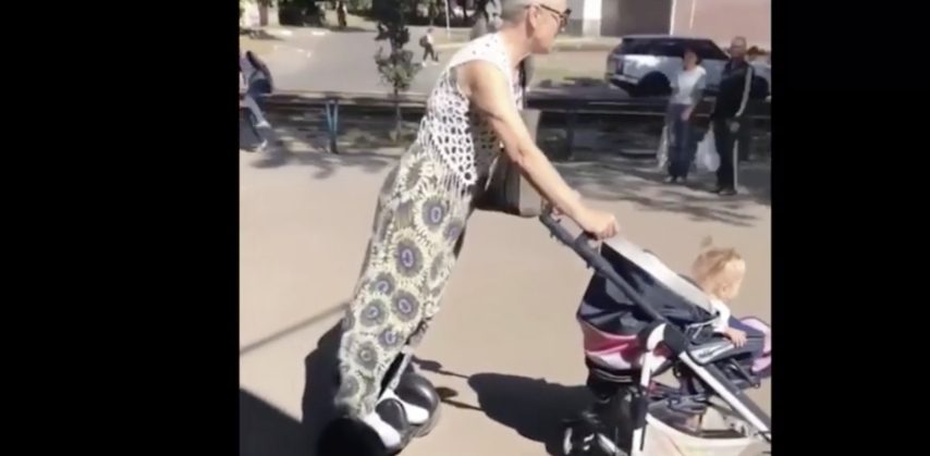 Come spingere il passeggino senza fatica: la nonna moderna usa il segway