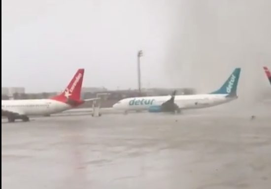 Immagini incredibili quelle registrate da un pilota che ha immortalato i minuti in cui un violento tornado si è abbattuto sulla pista dell'aeroporto di Antalya in Turchia. Venti talmente forti da spostare aerei fermi.