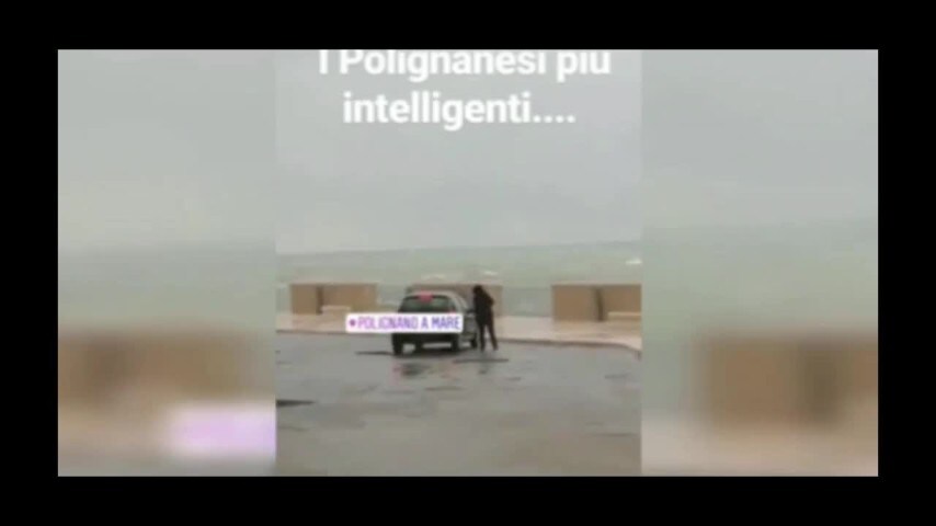 Un video ripreso e pubblicato su Instagram mostra il momento in cui delle persone in auto si avvicinano per vedere il mare in tempesta ma in modo troppo pericoloso. Infatti una grossa onda li travolge rischiando di trascinarli in acqua. È accaduto nella nota località costiera di Polignano a mare in provincia di Bari.