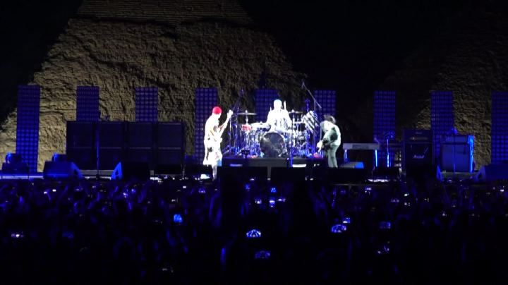 Il concerto a Giza davanti a 10.000 fan in festa Il Cairo, 16 mar. (askanews) - Un concerto unico che passerà alla storia. I Red Hot Chili Peppers hanno suonato davanti alle grandi piramidi di Giza in Egitto davanti a 10 mila persone arrivate da 67 paesi diversi. La band californiana ha suonato uno dopo l'altro i grandi successi che hanno infiammato il pubblico presente ma anche i migliaia di fan che hanno seguito l'evento in streaming sul sito e i profili social dei Red Hot Chili Peppers. Il concerto, dove uno straordinario Anthony Kiedis ha dato il meglio di se, è stato promosso dal ministero del turismo egiziano per cercare di far tornare i turisti nel paese dopo la crisi seguita ai disordini dopo la primavera araba.
