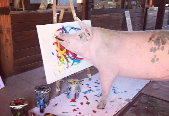 Un maialino con un dono speciale: prende il pennello ed è magia