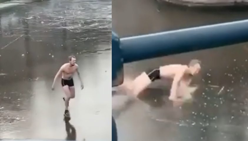 Quest'uomo stava pattinando su uno dei canali ghiacciati di Amsterdam dopo l'ondata di gelo. Alla fine però la lastra è troppo sottile e non regge il suo peso, così finisce in acqua.