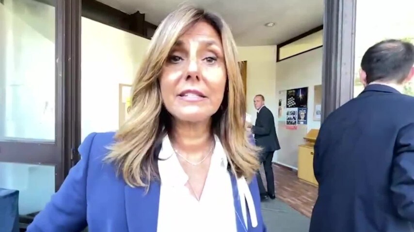 Rosanna Piturru, storica inviata del Tg4 ricorda Emilio Fede all'esterno della Chiesa: