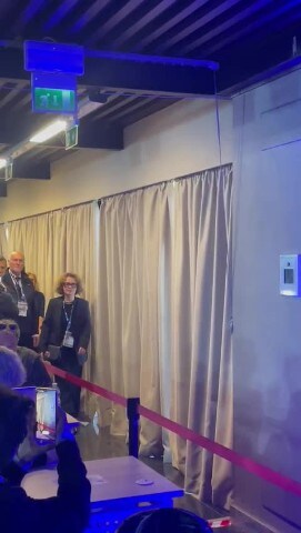 L'ingresso di Irina Shaky nella conferenza stampa della terza serata