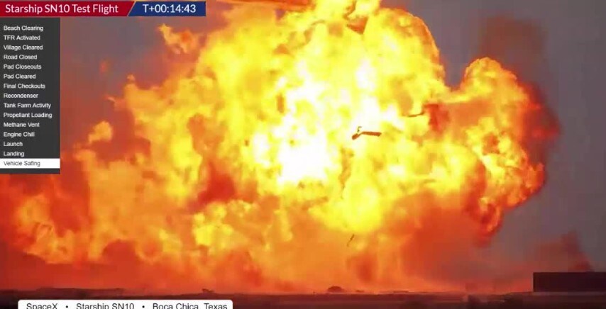 Razzo Starship SN10 esplode dopo l'atterraggio