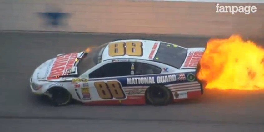 Il protagonista dell'incidente è Dale Earnhardt Jr. che con la sua Chevrolet ha toccato l'erba con lo pneumatico anteriore sinistro perdendo il controllo dell'auto che ha poi toccato il muretto e ha preso fuoco. Tanta paura ma per fortuna niente di serio.