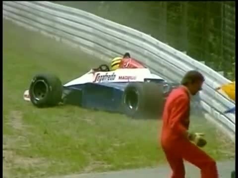 Perde il controllo della sua Toleman in curva e sbatte contro le barriere. Così finisce il Gp di Germania del 1984 per Senna, all'esordio sul circuito tedesco dei Hockenheim.