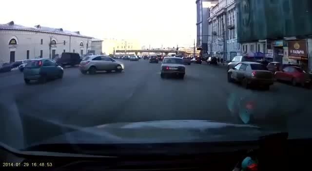Mosca, Russia. Quello che vedete è il più folle parcheggio mai realizzato: nel bel mezzo del traffico, il folle conducente sterza, cambia senso di marcia evitando le due corsie d'auto che procedono in senso opposto e... voilà, il parcheggio di una precisione matematica. Davvero senza parole