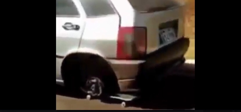 Uno skateboard al posto della ruota: un modo alternativo per spostare un'auto senza ruota.