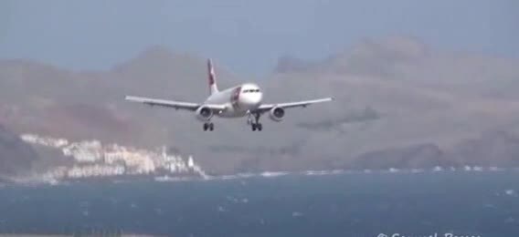 Nell'isola del Portogallo di Madeira, le forti raffiche di vento mettono in seria difficoltà i piloti che nonostante le manovre non riescono facilmente a completare l'atterraggio in aeroporto.