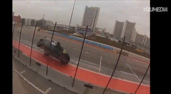0:30 Latvala fuori pista, investe uno spettatore e poi riparte