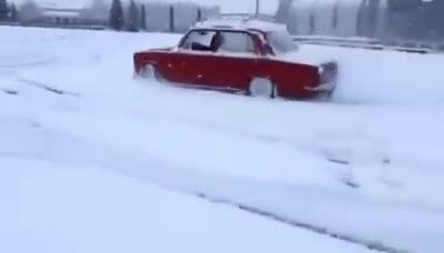 Ecco come "divertirsi" sulla neve con un'auto d'epoca
