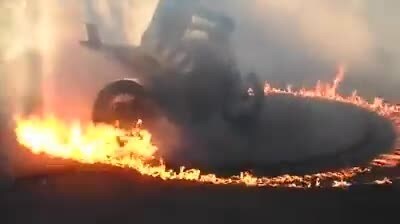 Realizza cerchi di fuoco con la sua moto ma attenzione a quando parte