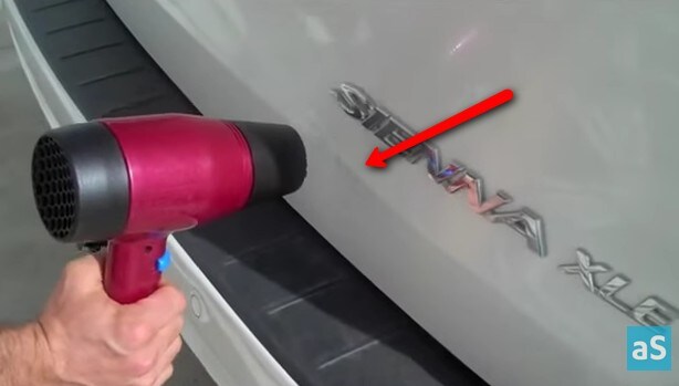 Mette il phon vicino all'auto ed ecco come ripara l'ammaccatura