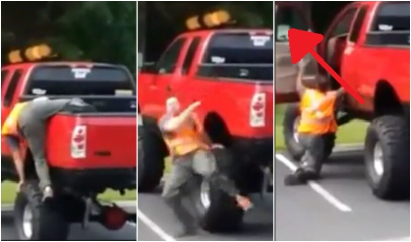 È ubriaco fradicio, scende dal suo pick up ma aspettate che arrivi al finestrino: esilarante!