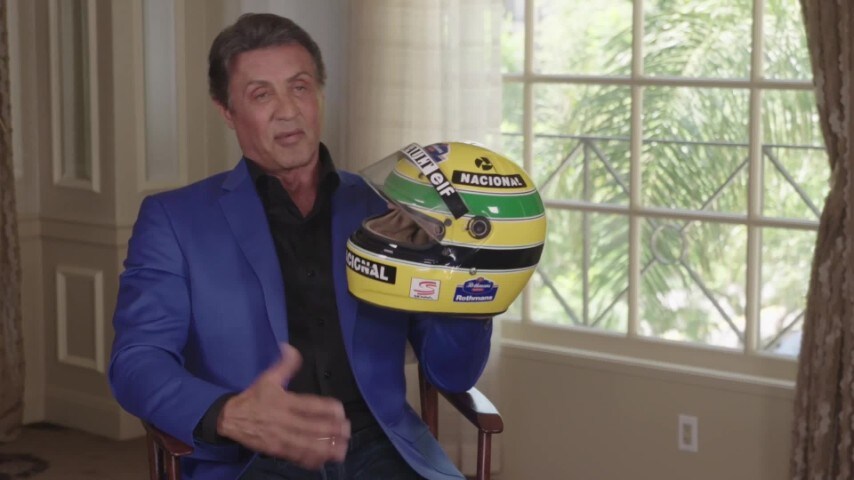 Sylvester Stallone mostra il casco di Ayrton Senna