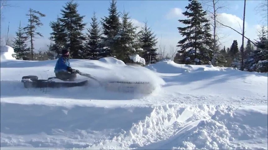 Una slitta/spazzaneve che sembra un carro armato ma va a batteria
