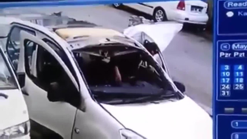 Quest'uomo è nell'abitacolo della sua auto a GPL (non si sa se l'impianto era di serie o fatto manualmente), ma all'improvviso un'esplosione brucia parte della sua auto ma lui resta praticamente illeso.