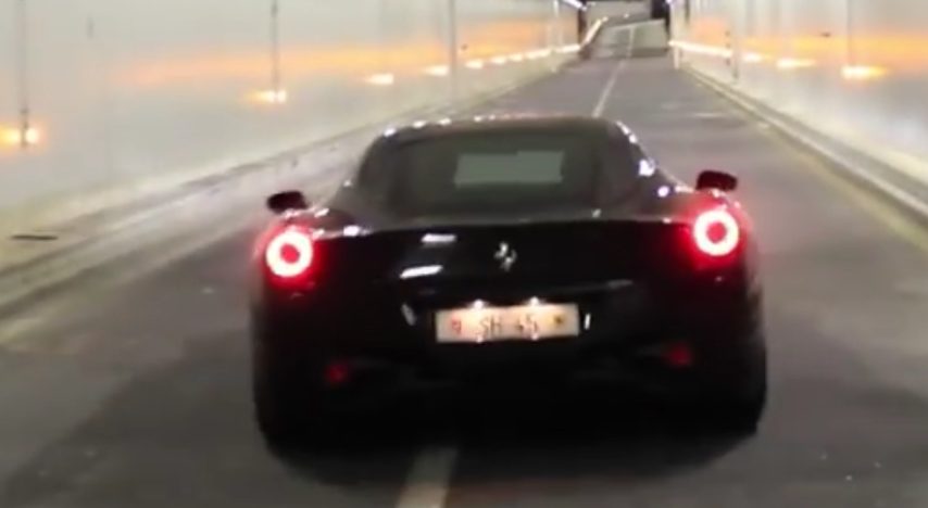 Ferrari sotto un tunnel: l'accelerazione e il rombo sono mostruosi