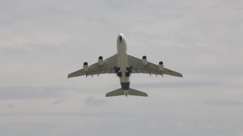 Un'inquadratura suggestiva da cui guardare il decollo di un Airbus A380. L'aereo si alza in verticale, le immagini sono davvero suggestive.