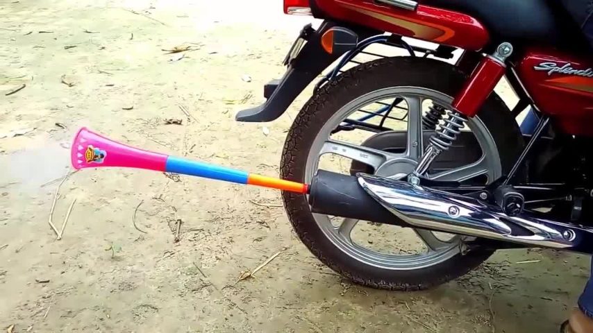 Se non vi piace il rombo della vostra moto, potreste provare a collegare una una vuvuzela allo scarico: provare per credere.