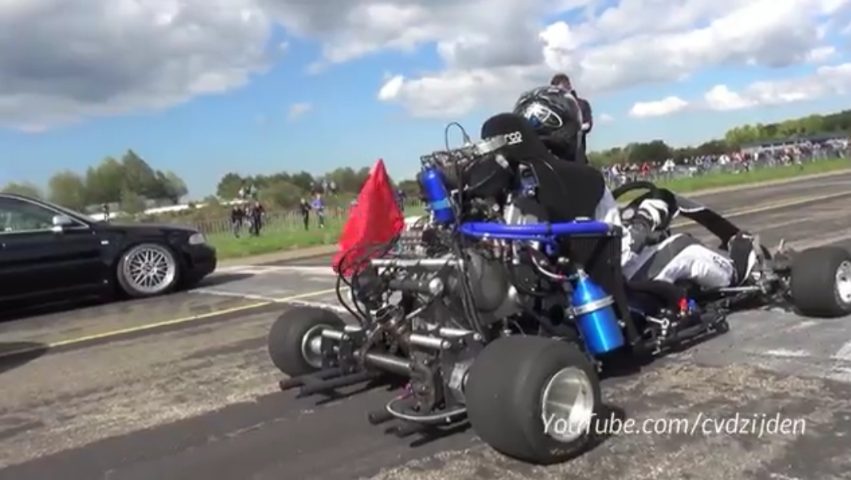 Un Super Kart, equipaggiato con motore Honda CBR1000RR, in grado di raggiungere velocità elevatissime, sfida un'Audi S4: il risultato è sorprendente.