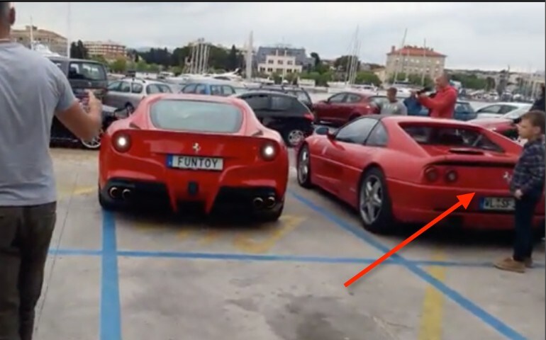 Il guidatore a bordo della Ferrari parcheggiata mette in moto l'auto. Le persone che stanno lì intorno a guardare non vedono l'ora di sentire il rombo adrenalinico del motore e il pilota li accontenta; ecco la scena divertente: il ragazzino che si trova lì sul posto, improvvisamente si ritrova a passare dietro la Ferrari proprio nel momento in cui il guidatore dà gas: il rumore è pazzesco e il piccolo si spaventa. Le immagini sono esilaranti.Fonte: https://www.youtube.com/watch?v=rcLaMptmWYE