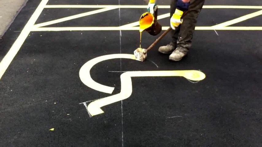 In questo breve video un operaio mostra come disegnare, in poco tempo e da solo, il simbolo del parcheggio per disabili. Fonte: https://www.youtube.com/watch?v=lv8qDJtYX2o