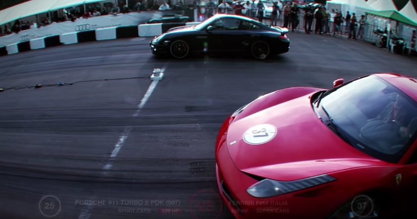 Sfida ad alta velocità tra la Porsche 911 Turbo S PDK e la Ferrari 458 Italia. A tagliare prima il traguardo è la Porsche che, in un chilometro e mezzo, riesce a fare 281 km/h in 29 secondi a discapito della Ferrari che raggiunge i 283km/h ma in 30 secondi.