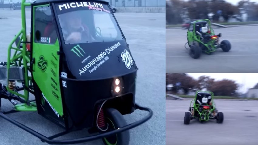 Le acrobazie con un'Ape modificata con il motore di una Kawasaki Ninja 900