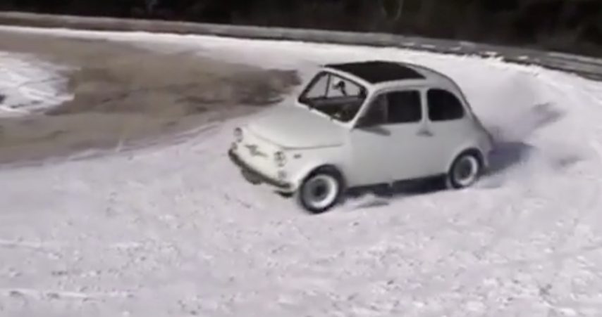 La 500 non si ferma nemmeno sulla neve: le derapate con la mitica FIAT