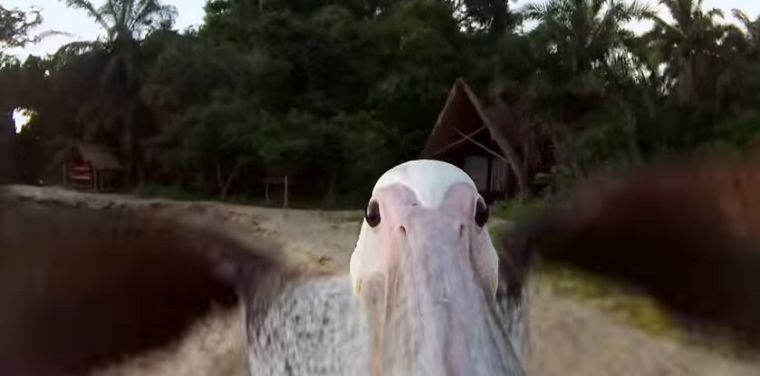 In viaggi con una action cam mostrano un pellicano che "impara" a pescare. Il grosso uccello, insieme al suo amico uomo sulla canoa, cattura qualche pesce e lo mangia. In altre inquadrature, una vista particolare per accompagnare il volo del pellicano sul parco Greystoke Mahale in Tanzania. Fonte Video: https://www.youtube.com/watch?v=zwI9omOWH9k