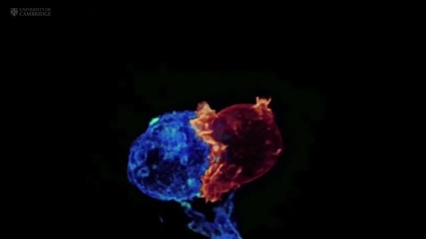 I linfociti T uccidono le cellule tumorali in questo filmato della Cambridge University.