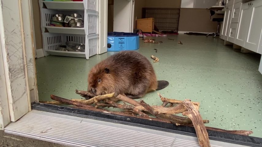 Un giovane castoro costruisce una diga in un centro di recupero: il video virale