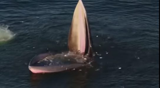 La balena "inganna" il banco di pesci e in pochi secondi ne mangia una tonnellata