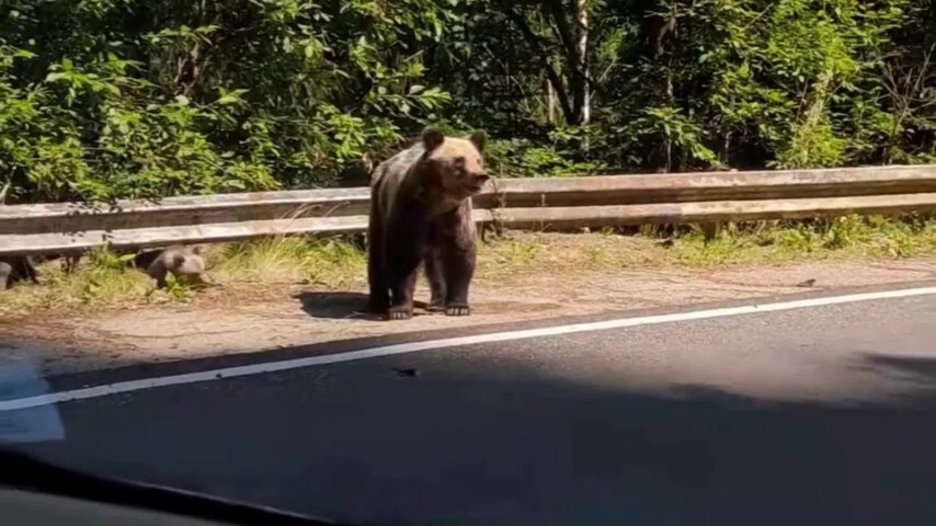 Un'orsa con i cuccioli s bordo strada in Romania. Video di Arianna Dicé
