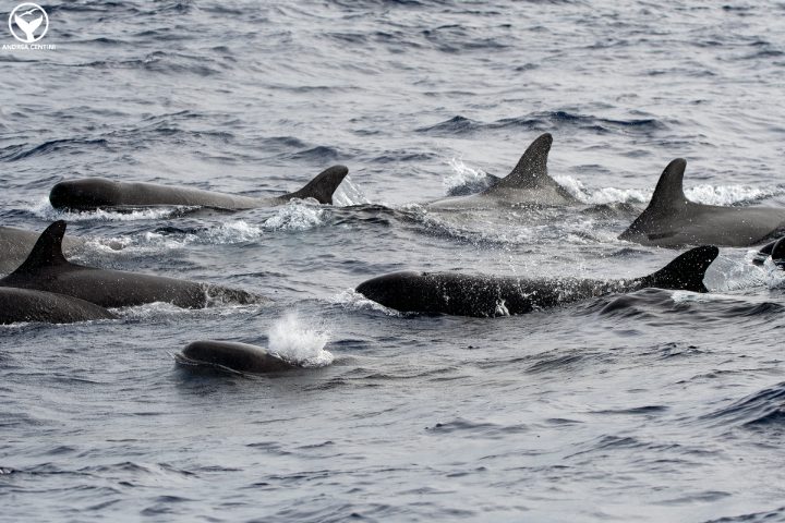 Durante un'escursione di whale watching alle Azzorre, innanzi all'isola di Pico, abbiamo incontrato un numeroso pod di pseudorche (Pseudorca crassidens), splendidi cetacei odontoceti appartenenti alla famiglia di delfinidi. Questi mammiferi marini, che possono arrivare a una lunghezza di 6 metri, sono abilissimi predatori che danno la caccia a grossi pesci e altri delfini. Pur essendo meno note delle orche vere e proprie, le pseudorche - false killer whale in inglese - sono ugualmente affascinanti. Il copioso gruppo ripreso nell'Oceano Atlantico nuotava in compagnia di alcuni tursiopi (Tursiops truncatus), grossi delfini con cui possono ibridarsi. Nella seconda parte del filmato è possibile ammirarli anche sott'acqua, grazie alle riprese fatte con una piccola action camera. Un incontro indimenticabile con animali straordinari.