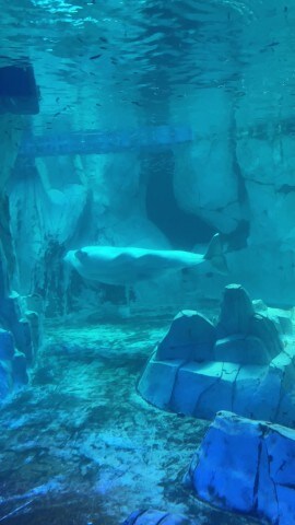 I beluga che nuotano nell'acquario Oceanogràfic di Valencia