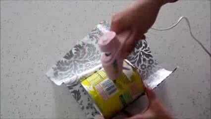 Avvolge il contenitore di latta nel tessuto, il riciclo utile a cui non avevi pensato