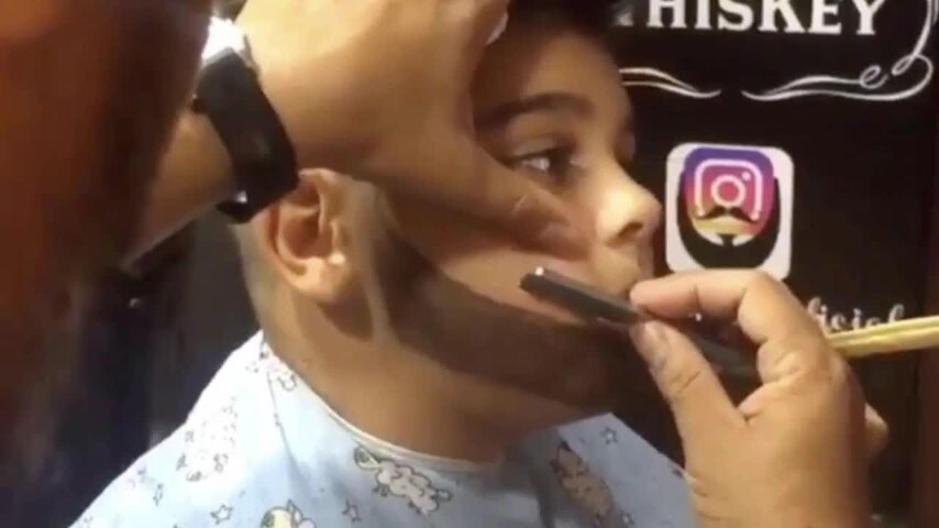 Solitamente dal barbiere si va per farsi tagliare la barba; il bimbo del video, invece, fa il contrario: con un pennellino e della tintura, il barbiere gli ricrea una perfetta barba con tanto di baffo. Infine gli aggiusta i capelli tirandoli su con un o' di gel ed ecco che il ragazzino ha un nuovo look da adulto.Fonte: https://www.instagram.com/p/BReQ-ozlcIQ/