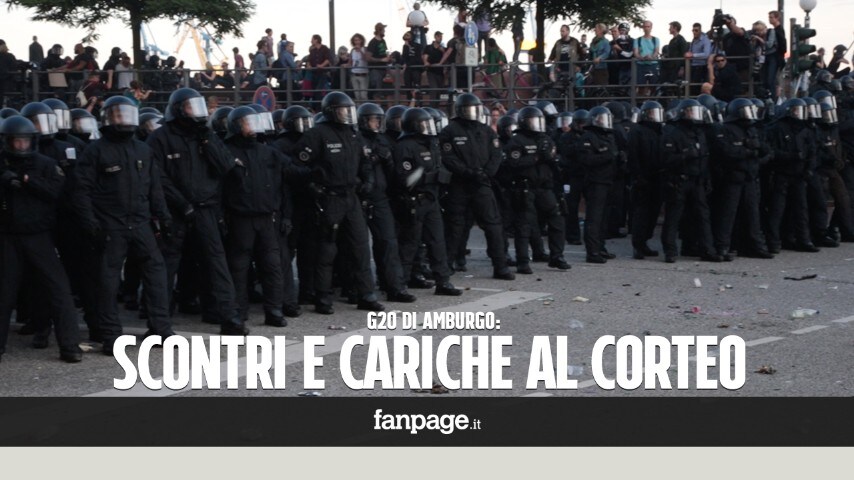 Duri scontri al corteo contro il vertice G20 di Amburgo, la polizia tedesca ha caricato i manifestanti cercando di disperderli anche con l'uso di idranti