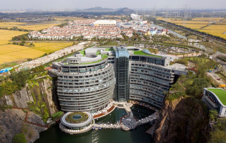 L'Intercontinental Shanghai Wonderland è un albergo molto particolare: è stato costruito in una cava abbandonata. Alto 18 piani, di cui due sommersi, l’hotel sotterraneo è stata una sfida per gli ingegneri: per completarlo sono serviti 10 anni. Il costo totale: l’equivalente di circa 132 milioni di euro. Il tetto è quasi a livello stradale, mentre tutto il resto dell'edificio con le sue 336 camere si affaccia sulla parte interna della cava.