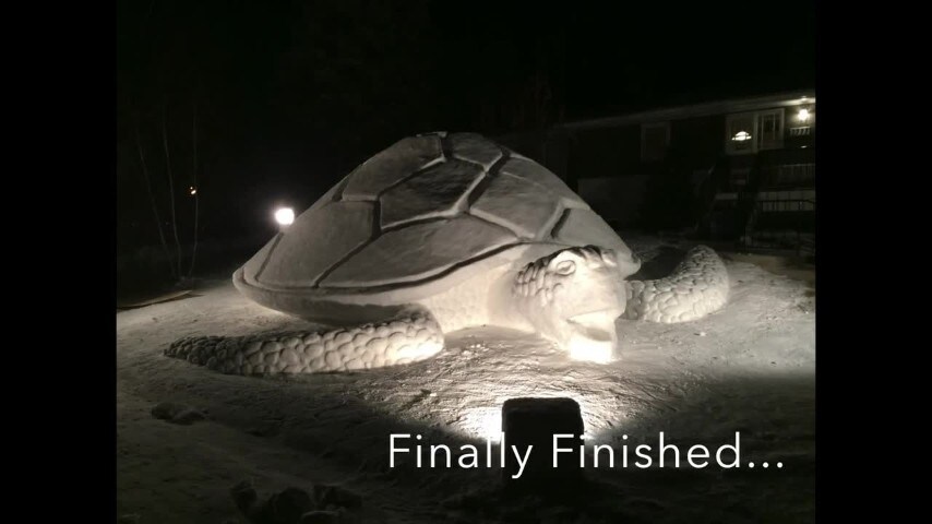I fratelli Bratz realizzano ogni anno delle opere d'arte con la neve. Quest'anno hanno impiegato 300 ore per creare una tartaruga gigante. Le loro sculture sono curate in ogni dettaglio e sconvolgono tutti gli appassionati per la loro grandezza.