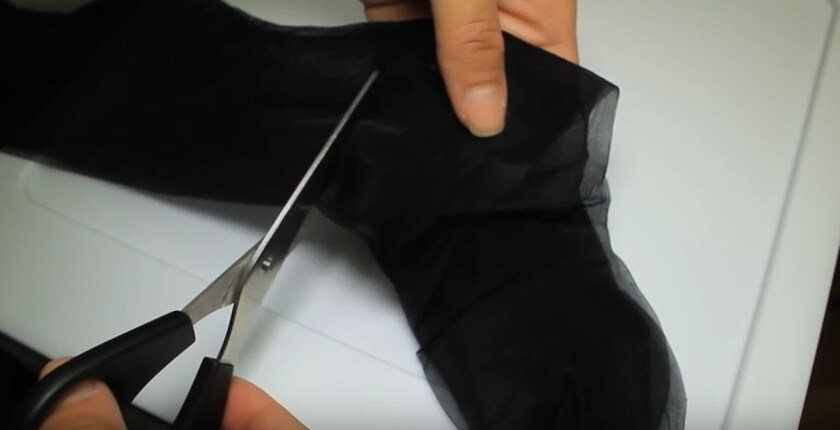 Con un semplice taglio, la ragazza trasforma questo paio di calze in qualcosa di sorprendente