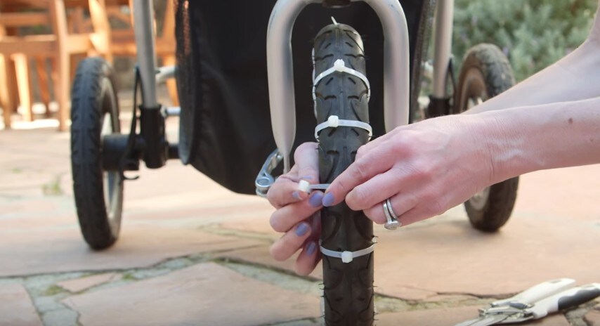 Lega le fascette alle ruote del passeggino: il trucco utile per tutte le mamme